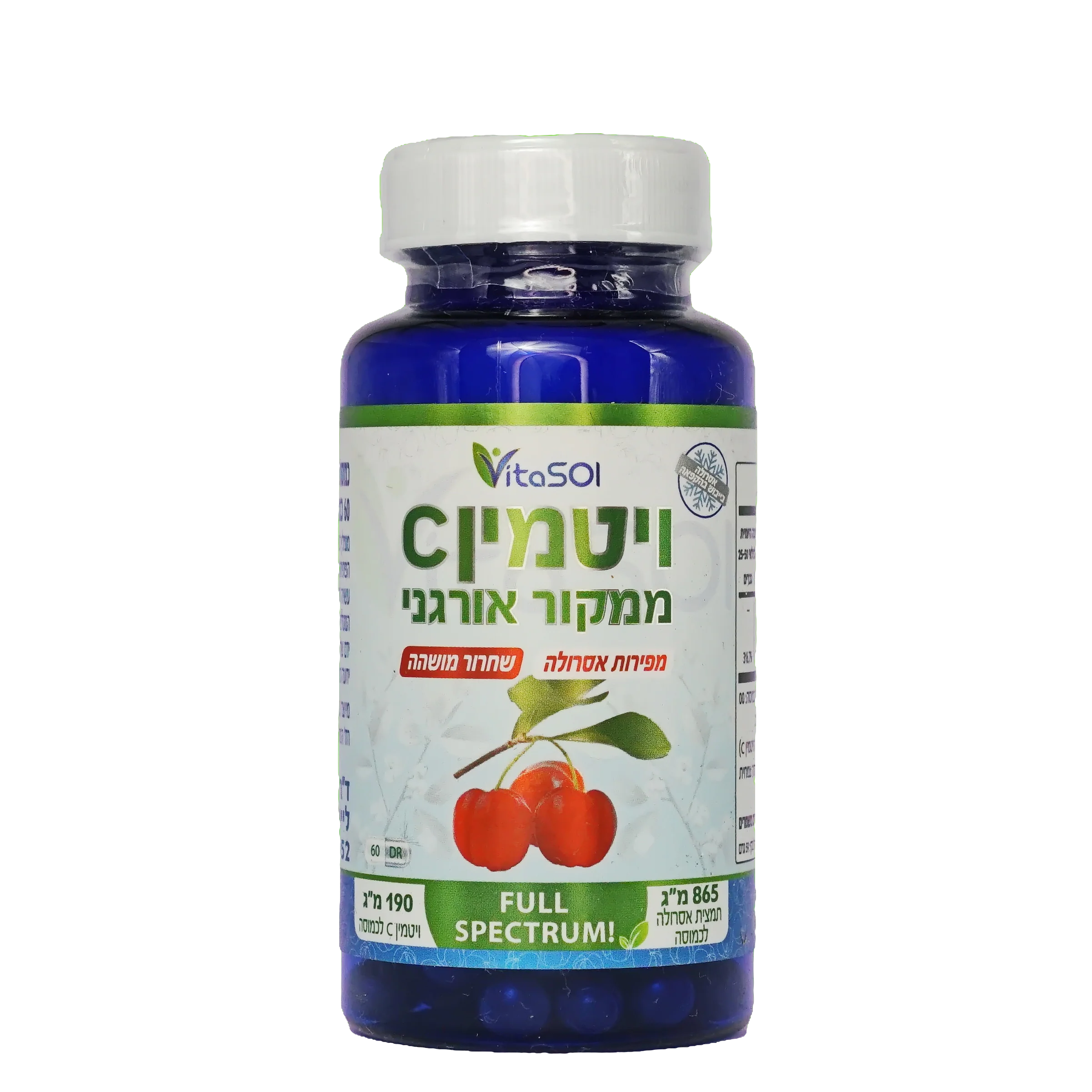 60 כמוסות * 865 מ"ג אסרולה לכמוסה * 190 מ"ג ויטמין C טבעי מלא לכמוסה