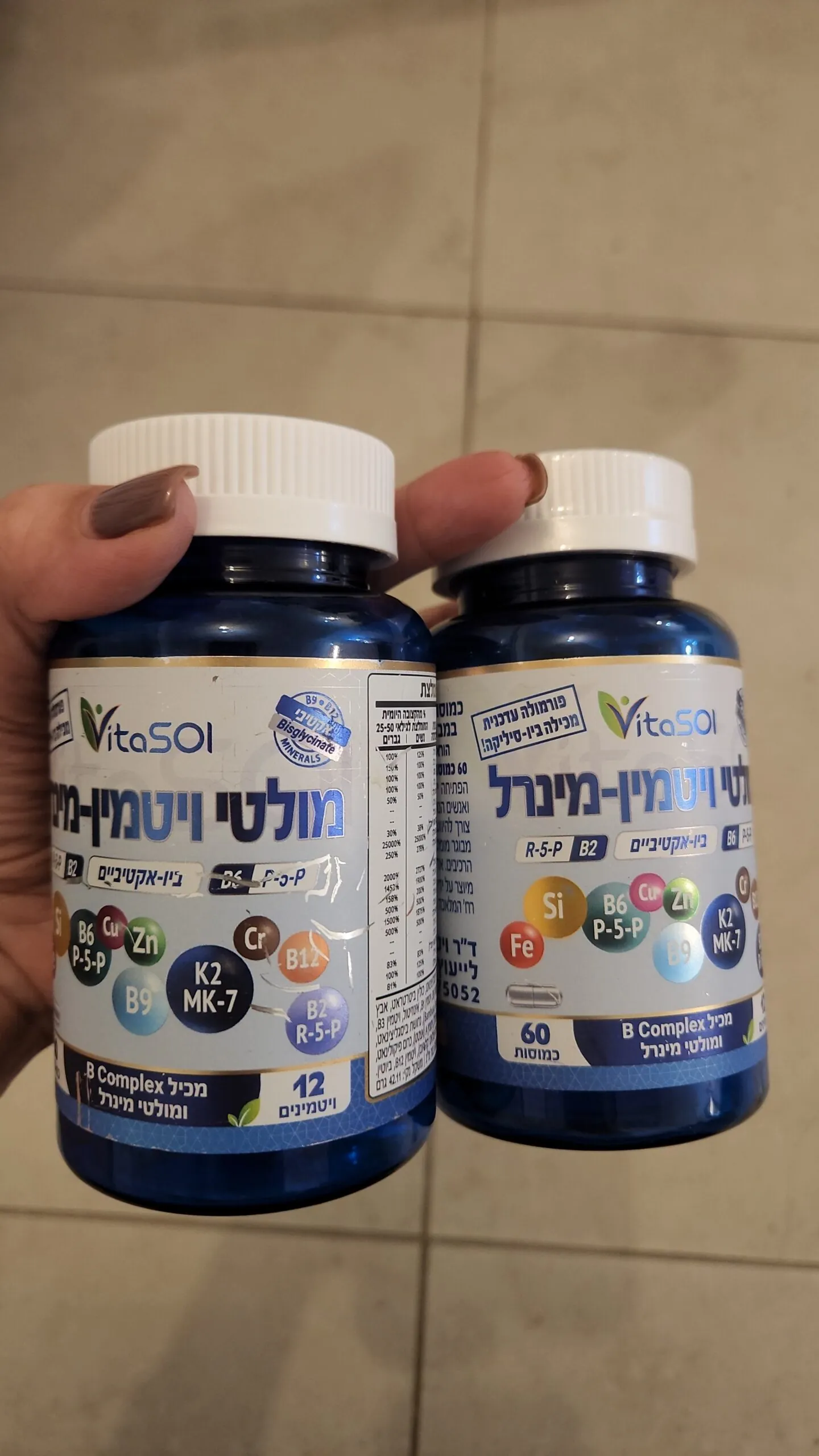 אבל לא המולטי ויטמין-מינרל של VitaSOl. תוסף ה- Multi Vitamin שלנו מיוצר ברמה הגבוהה ביותר ועם הרכיבים האיכותיים ביותר (בעולם): הוא מכיל Multi Mineral שכולל 6 מינרלים, רובם ביבוא שלנו בבלעדיות: ברזל, אבץ, נחושת, מנגן - מסוג ביסגליצינאט, פעילים במלואם (Fully Reactive), כרום (מינרל קורט חשוב), וכן את המינרל החיוני סיליקה באיכות הגבוהה ביותר: ביו-סיליקה ממיצוי נבטי במבוק. בנוסף המולטי ויטמין מכיל B Complex שרובו ביו-אקטיבי. הוא כולל: B12 מתילקובלמין, B9 מתיל-פולאט MTHF-5, ויטמין B6 מסוג P-5-P, ויטמין B2 מסוג R-5-P ו- B3 ניקוטינאמיד. כל אלו פעילים ביולוגית. ה- K2 מהסוג המוביל MK-7. התוסף מתאים לרוב האוכלוסיה: גברים ונשים וכן נשים בהיריון ונשים מניקות (מומלץ להיוועץ ברופא).