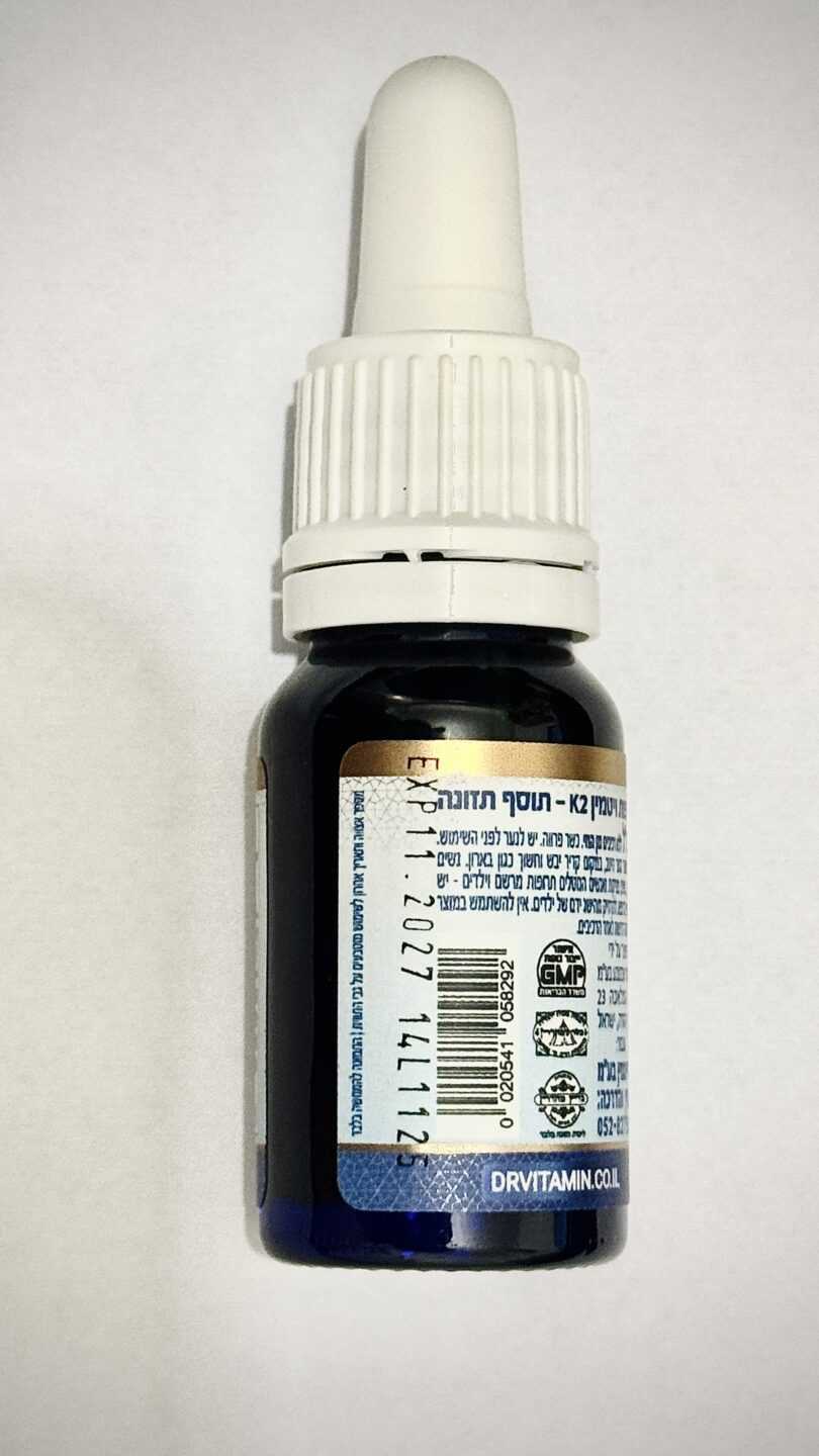 ויטמין K2 בטיפות * האיכותי ביותר: מסוג MK-7, מתסיסה טבעית (פרמנטציה), בשמן זית טבעי * בטיפות