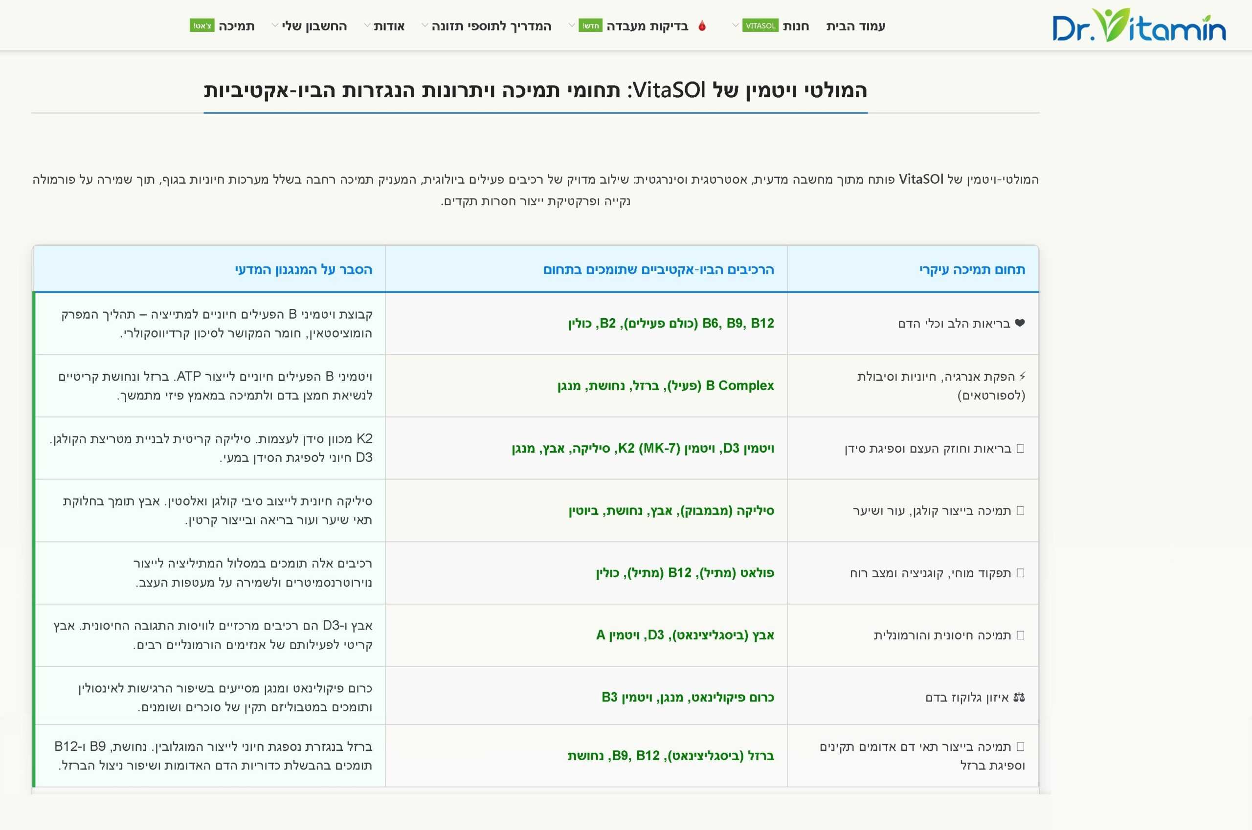 המולטי ויטמין של VitaSOl: תחומי תמיכה ויתרונות הנגזרות הביו-אקטיביות